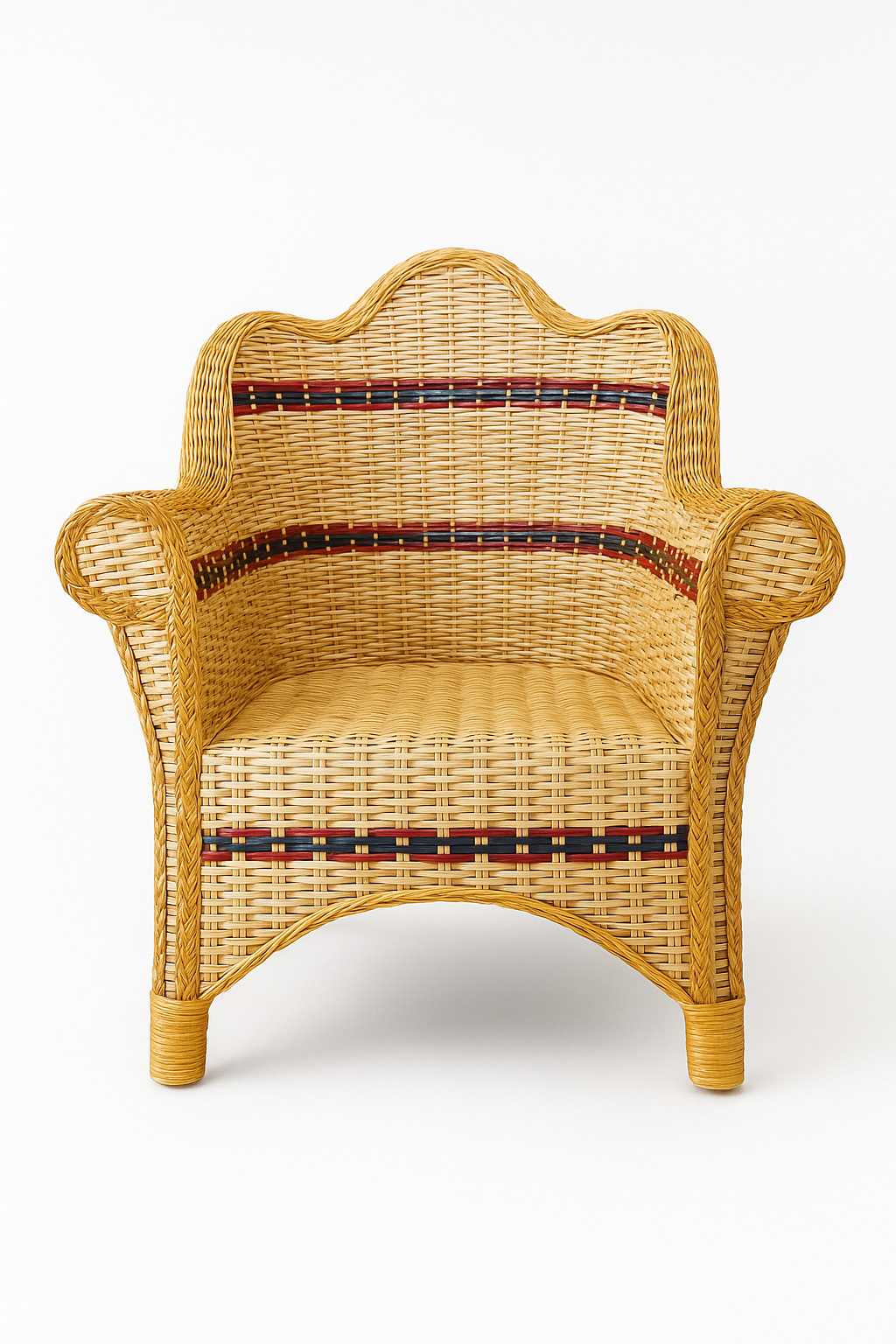 This beautifully handcrafted rattan armchair combines traditional weaving techniques with a timeless design. Featuring natural golden-brown tones with subtle red and dark accents, it adds a touch of warmth and sophistication to any living space. Made from high-quality natural rattan, the chair is both sturdy and comfortable, perfect for indoor use or a covered patio. Its wide armrests and supportive backrest provide exceptional comfort, making it ideal for relaxing, reading, or casual gatherings.