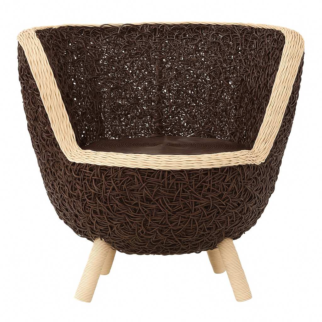 Bring modern elegance and natural charm into your space with this handcrafted synthetic rattan lounge chair. Featuring a unique woven design in deep brown with stylish cream accents, it blends durability with sophistication. Built with high-quality synthetic rattan, the chair is weather-resistant, lightweight, and easy to maintain — making it perfect for both indoor living rooms and outdoor patios.